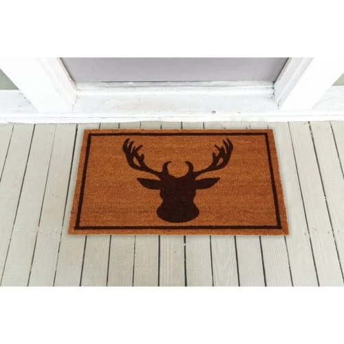 Aspect : Matériau principal : Fibres de cocoDimensions : Epaisseur (en cm) : 1,50Longueur (en cm) : 75,00Profondeur (en cm) : 45,00Autres caractéristiques : Informations complémentaires : Envers en latexPoids (en kg) : 2,00 Paillasson tête de cerf en fibres de coco • Dim : 75 x 45 cm • Envers latexé