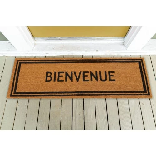 Aspect : Coloris : Naturel Noir Matériau principal : CocoMatériaux secondaires : LatexDimensions : Hauteur (en cm) : 1,50Longueur (en cm) : 120,00Profondeur (en cm) : 40,00Autres caractéristiques : Entretien : Tapez votre tapis régulièrement et aspirez l’excédent de poussière.Poids (en kg) : 3 Paillasson en cocoFibre de noix de coco naturelle et noireEnvers latexé antidérapantAvec inscription >Longueur 120 cm , Largeur 40 cm , Épaisseur 1.5 cm