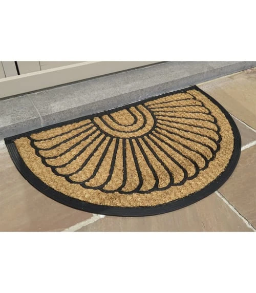 Lorsqu’il y a des intempéries, vous aimeriez éviter de rentrer chez vous en salissant partout ? Alors le paillasson d’entrée demi-lune en coco bouclée est le tapis qu’il vous faut.Une fois installé devant votre pas-de-porte, ce paillasson demi-lune en coco bouclée donnera une allure très conviviale à votre entrée, et vous permettra en un frottement de chaussures, de vous débarrasser de toute la saleté.Matière : 100% coco boucle, 100% caoutchouc/rubberDimensions : 45 x 75 x 1 cm