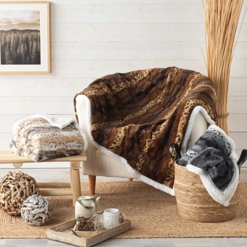 Caractéristiques du plaid imitation fourrure Sherpa grizzli chocolat :