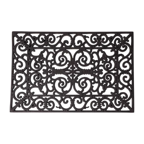 Ce tapis en caoutchouc rectangulaire possède de magnifiques ornements. Ce tapis en caoutchouc a un design victorien classique avec des boucles gracieuses. L’avantage d’un paillasson entièrement en caoutchouc est qu’il se nettoie facilement en le rinçant sous un robinet ou un tuyau. Il peut s’utiliser en intérieur comme en extérieur.