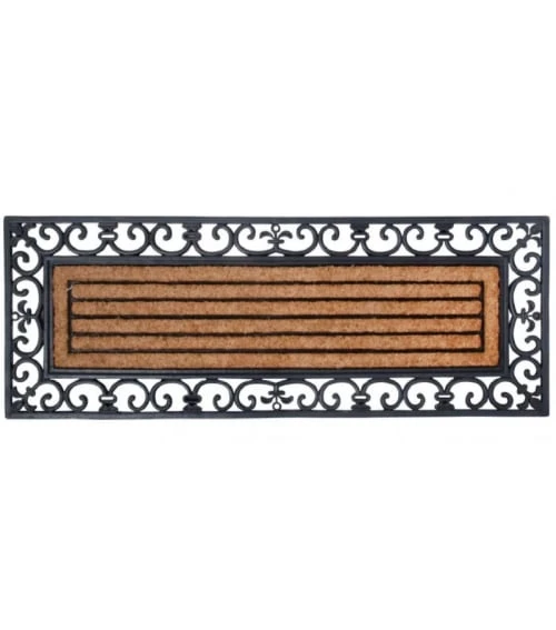 Très grand paillasson en caoutchouc et coco. Ce paillasson élégant et pratique offre une très longue surface avec une longueur de 120cm. Paillasson très élégant avec ses motifs sobres et la double couleur noir et coco très complémentaire. Dimensions: Long. 120cm x larg. 45cm x Haut: 1.8cmMatière: Coco et CaoutchoucCouleur: Noir et Coco
