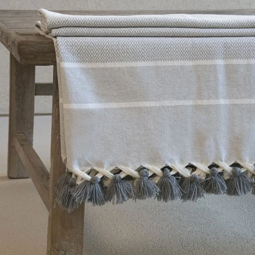 Tissé main par des artisans dans nos ateliers utilisant des matériaux 100% naturels, le plaid STOCKHOLM aux motifs chevron est plus épais que les modèles traditionnels. Chaud, confortable, et facile d’entretien, ses pompons et sa gamme de couleur, apportent instantanément raffinement et originalité à votre intérieur. Drapé sur le dos d’une chaise, soigneusement plié en bout de lit, sur un canapé… Le plaid STOCKHOLM est devenu l’objet incontournable de décoration de nos intérieurs et extérieurs. Housses de coussins et Sets de salle de bain de la gamme STOCKHOLM également disponibles. Nous conseillons de laver vos produits avant toute première utilisation (premier lavage à froid). Nos produits sont très résistants mais nous recommandons tout de même un lavage à 30 degrés pour en préserver les fibres (et la planète) et un séchage à l’air libre, nous déconseillons le sèche-linge. Si vous utilisez ce dernier, optez pour une température modérée et retirez vos draps avant séchage complet. Dimensions disponibles du plaid STOCKHOLM: •130 x 170 cm •160 x 250 cm Nos produits sont faits mains par des artisans, les petites imperfections qui peuvent apparaître sur nos tissages attestent du fruit d’un travail artisanal soigné, fait main et ne sont pas considérés comme des défauts. Chaque produit est unique. 100% coton