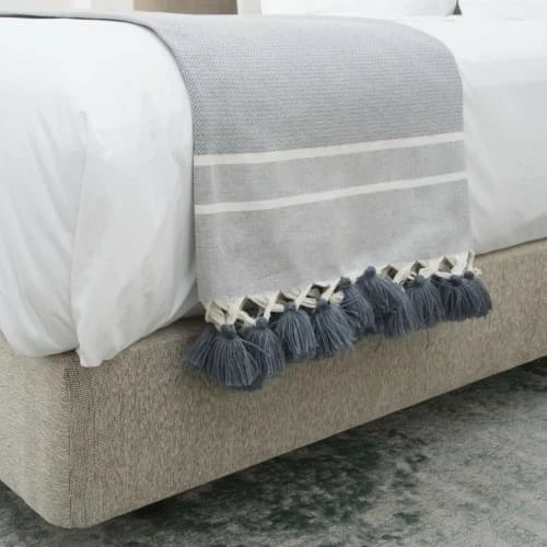 Tissé main par des artisans dans nos ateliers utilisant des matériaux 100% naturels, le plaid STOCKHOLM aux motifs chevron est plus épais que les modèles traditionnels. Chaud, confortable, et facile d’entretien, ses pompons et sa gamme de couleur, apportent instantanément raffinement et originalité à votre intérieur. Drapé sur le dos d’une chaise, soigneusement plié en bout de lit, sur un canapé… Le plaid STOCKHOLM est devenu l’objet incontournable de décoration de nos intérieurs et extérieurs. Housses de coussins et Sets de salle de bain de la gamme STOCKHOLM également disponibles. Nous conseillons de laver vos produits avant toute première utilisation (premier lavage à froid). Nos produits sont très résistants mais nous recommandons tout de même un lavage à 30 degrés pour en préserver les fibres (et la planète) et un séchage à l’air libre, nous déconseillons le sèche-linge. Si vous utilisez ce dernier, optez pour une température modérée et retirez vos draps avant séchage complet. Dimensions disponibles du plaid STOCKHOLM: •130 x 170 cm •160 x 250 cm Nos produits sont faits mains par des artisans, les petites imperfections qui peuvent apparaître sur nos tissages attestent du fruit d’un travail artisanal soigné, fait main et ne sont pas considérés comme des défauts. Chaque produit est unique. 100% coton