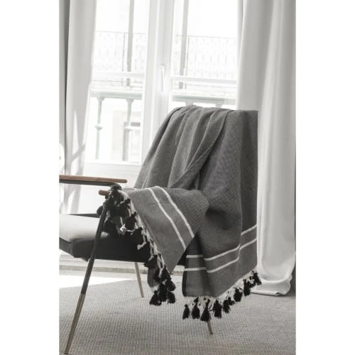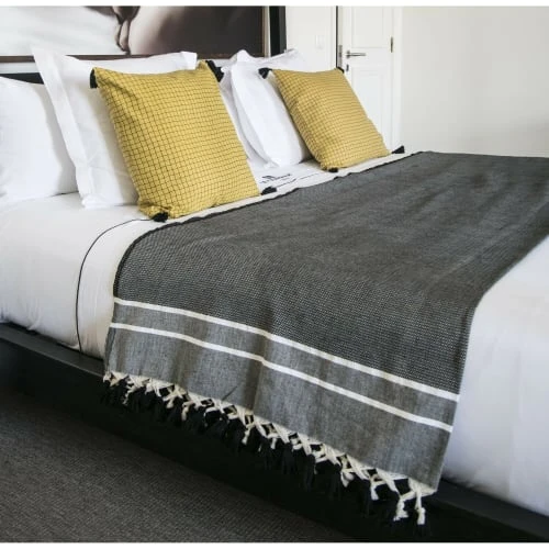 Tissé main par des artisans dans nos ateliers utilisant des matériaux 100% naturels, le plaid STOCKHOLM aux motifs chevron est plus épais que les modèles traditionnels. Chaud, confortable, et facile d’entretien, ses pompons et sa gamme de couleur, apportent instantanément raffinement et originalité à votre intérieur. Drapé sur le dos d’une chaise, soigneusement plié en bout de lit, sur un canapé… Le plaid STOCKHOLM est devenu l’objet incontournable de décoration de nos intérieurs et extérieurs. Housses de coussins et Sets de salle de bain de la gamme STOCKHOLM également disponibles. Nous conseillons de laver vos produits avant toute première utilisation (premier lavage à froid). Nos produits sont très résistants mais nous recommandons tout de même un lavage à 30 degrés pour en préserver les fibres (et la planète) et un séchage à l’air libre, nous déconseillons le sèche-linge. Si vous utilisez ce dernier, optez pour une température modérée et retirez vos draps avant séchage complet. Dimensions disponibles du plaid STOCKHOLM: •130 x 170 cm •160 x 250 cm Nos produits sont faits mains par des artisans, les petites imperfections qui peuvent apparaître sur nos tissages attestent du fruit d’un travail artisanal soigné, fait main et ne sont pas considérés comme des défauts. Chaque produit est unique. 100% coton
