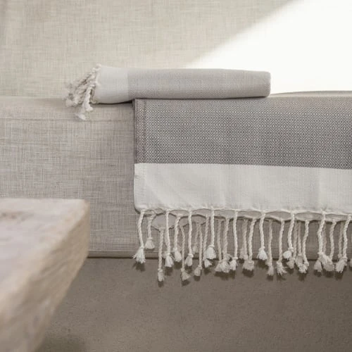 Tissé main par des artisans dans nos ateliers utilisant des matériaux 100 % naturels, le plaid COURCHEVEL 100% coton motifs losange est plus épais que les modèles traditionnels et offre des dimensions généreuses . Chaud, confortable et facile d’entretien, sa gamme de couleur et la qualité de tissage apporte instantanément raffinement et élégance à votre intérieur. Utilisé comme couverture, couvre-lit, pour dissimuler un sommier ou matelas, ou plié soigneusement sur un canapé … Le plaid COURCHEVEL est devenu l’objet incontournable de décoration de nos intérieurs et extérieurs. Nous conseillons de laver vos produits avant toute première utilisation (premier lavage à froid). Nos produits sont très résistants mais nous recommandons tout de même un lavage à 40 degrés pour en préserver les fibres (et la planète) et un séchage à l’air libre, nous déconseillons le sèche-linge. Si vous utilisez ce dernier, optez pour une température modérée et retirez vos draps avant séchage complet. Dimensions disponibles du plaid COURCHEVEL en coton: •130 x 170 cm •160 x 250 cm Nos produits sont faits mains par des artisans, les petites imperfections qui peuvent apparaître sur nos tissages attestent du fruit d’un travail artisanal soigné, fait main et ne sont pas considérés comme des défauts. Chaque produit est unique. 100% coton