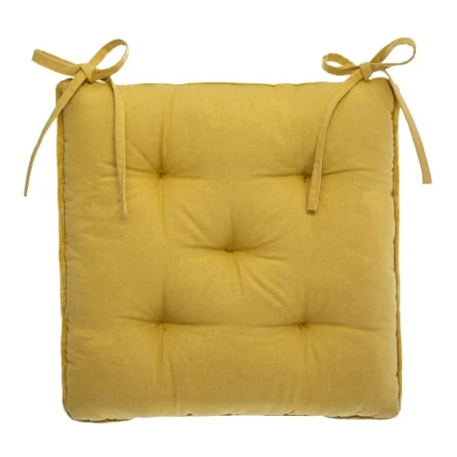 Home Maison Galette De Chaise épaisse En Velours Coton Ocre 38 X 38