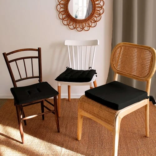 Galette Plate Unie en Coton Passe Poil et Nouettes. Composition :100% coton. Dimensions :40 x 40 cm. Piquage carré. 2 nouettes. . Galette de chaise vendue à l’unité