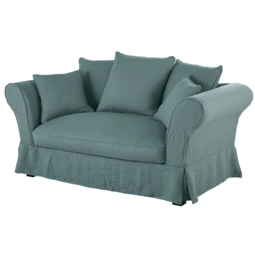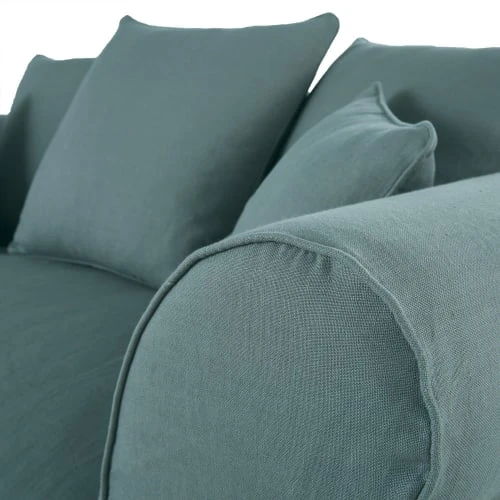 Revêtement : tissu 100% lin froissé (265g/m²), coloris bleu céladonStructure et garnissages non fournis