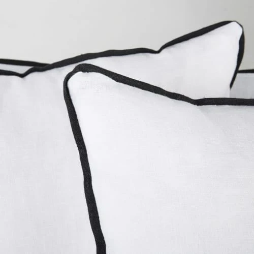 Revêtement : tissu 100% lin froissé (265g/m²), coloris blanc et volants noirsStructure et garnissages non fournis