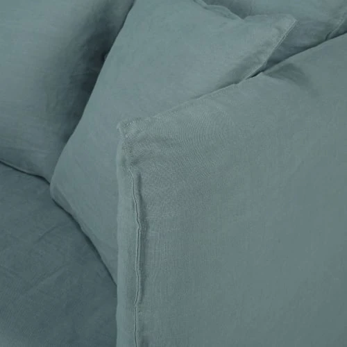 Revêtement : tissu 100% lin froissé (265g/m²), coloris bleu céladonStructure et garnissages non fournis