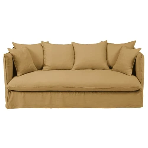 Maisons Du Monde Housse De Canapé 3/4 Places En Lin Froissé Ocre