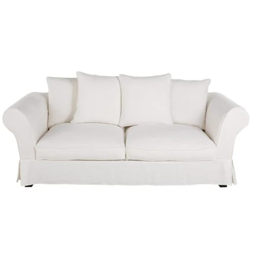 Maisons Du Monde Housse De Canapé Convertible 3/4 Places (12 Cm) En Lin Froissé Blanc
