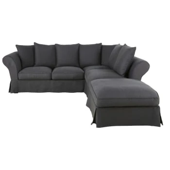 Maisons Du Monde Housse De Canapé D’angle Convertible (6 Cm) En Lin Froissé Gris Clair