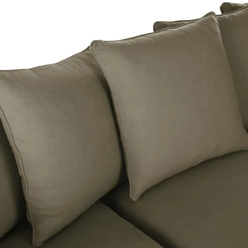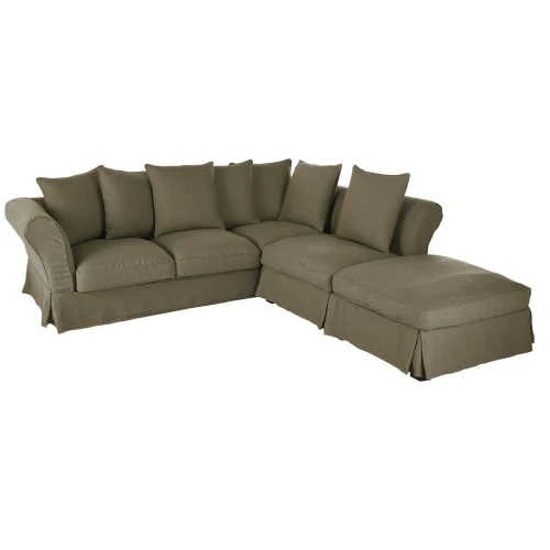 Maisons Du Monde Housse De Canapé D’angle Convertible En Lin Froissé Vert Kaki
