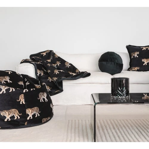 matière : Velours d’ameublement de qualité supérieure – 100% polyester avec ses tigres brodés en fil d’or – Doublure velours noir