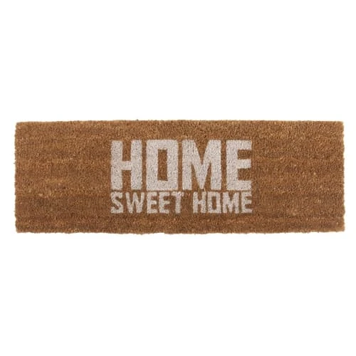 Paillasson ou tapis d’entrée home Sweet Home blanc en fibres naturelles de coco. Bienvenue chez vous ! Dimensions : 75 x 26cm Matière : fibres de coco robustes et solides BOX32 Design