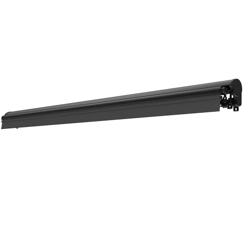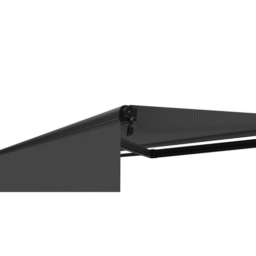 STORE BANNE MOTORISÉ SEMI-COFFRE : Le store de terrasse RENO vous permettra à la fois de vous protéger du soleil et de la chaleur, mais aussi de créer un espace de vie chaleureux sur votre terrasse. Sa toile en polyester 280 grammes/m² est imperméable. Elle est de coloris gris anthracite, avec un lambrequin enroulable droit, afin de vous protéger du soleil levant et couchant.Il dispose d’une armature en aluminium, avec un semi-coffre, qui permet de protéger la toile d’ombrage en position fermée (protection contre les intempéries).TÉLÉCOMMANDE À RADIOFRÉQUENCE : La toile est enroulée autour d’un tube en aluminium anodisé, robuste. La tension de cette toile se fait à l’aide de bras épais en aluminium, double câblage de tension, pour une toile tendue en permanence. Le déploiement et le rangement de la toile s’effectuent d’une simple pression sur la télécommande à radiofréquence. Il est également possible d’arrêter l’ouverture ou la fermeture en cours. Une manivelle est fournie en cas de panne de courant. Bien pensé, le store de terrasse RENO s’adapte à votre habitation, l’inclinaison de la pente se règle avec deux vis d’ajustement.