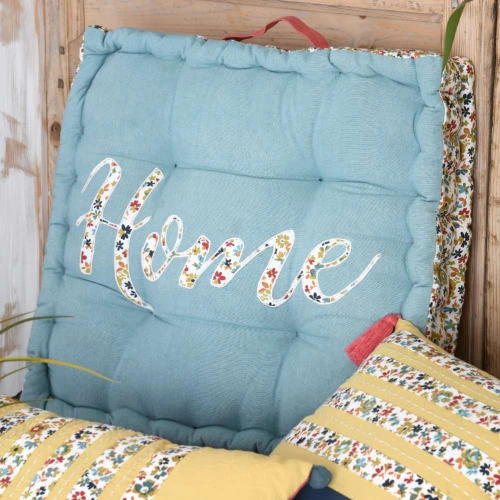 Collection Amaryllis Bleu – Coussin Pouf de sol 100% coton