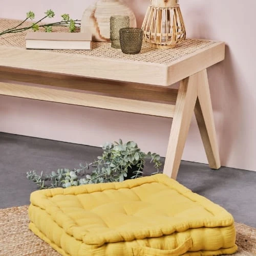 Comprend :1 coussin de sol 40x40x10 cmComposition :100% gaze de coton fibre naturelle 145 gsm et rembourrage polyester 1,1 kgDétails :Coussin matelassé avec poignée* Epaisseur : 10 cmLe coussin de sol 40X40 cm en gaze de coton de la collection Indian Flowers par Today accompagnera votre mobilier de maison et apportera une touche d’élégance dans votre espace de vie. Son tissu 100% gaze de coton 145 GSM donnera à ce coussin douceur et qualité. Vous pouvez déhousser votre coussin grâce à son système de zip invisible. Complétez votre décoration avec les autres produits de la gamme Indian Flowers aux couleurs et motifs assortis.