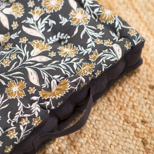 Comprend :1 coussin de sol 40X40X8 cmComposition :tissu 100% Coton fibre naturelleRembourrage coton recyclé 800 grDétails :Poignée intégréeFace A imprimé à fleurs / Face B unieCertifié Oeko-TexPas de lavageCe coussin de sol Today Indies 40X40X8 cm accompagnera votre mobilier de maison et apportera une touche doriginalité dans votre espace de vie. Sa composition 100% Coton donnera à ce coussin une douceur exceptionnelle. Ce produit est déclinable dans les différentes couleurs que propose la marque Today Indies et peut donc être assorti aux autres produits.