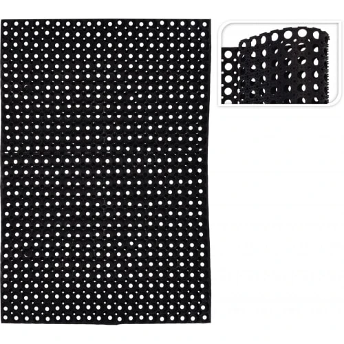 Paillasson en caoutchouc noir antidérapant avec perforations pour évacuation de l’eau. Convient parfaitement pour les lieux glissants: neige, eau… Dimensions: 120x80cm – Matière: Caoutchouc – Couleur: Noir