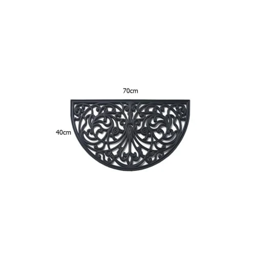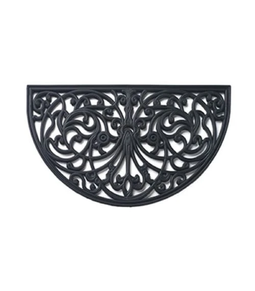 Paillasson en caoutchouc noir, forme demi-lune, avec motifs arabesques. Dimensions: 70x40x1.5cm – Matière: Caoutchouc – Couleur: Noir