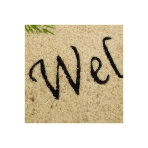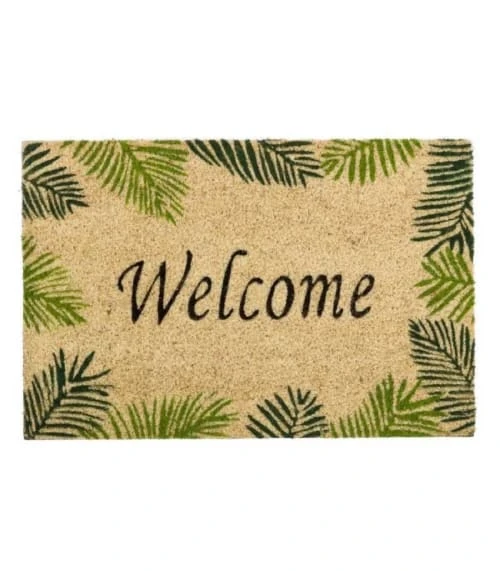 Paillasson en coco avec inscription ‘Welcome’ et décoration feuilles. Dimensions:60x40x1.5cm – Matière: Coco – Couleur: Multicolore