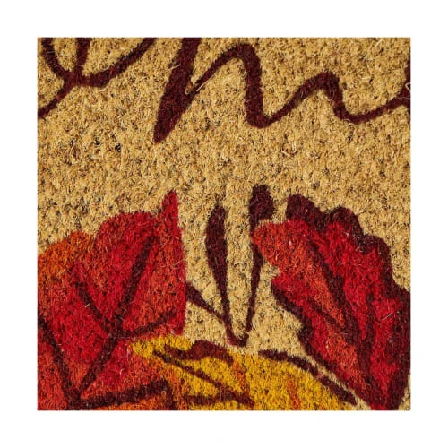 Paillasson en coco multicolore motifs feuilles et inscription welcome.
