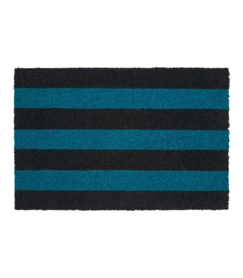 Paillasson en coco rayé bleu. Dimensions: 60x40x2cm – Matière: Coco – Couleur: Bleu et Noir