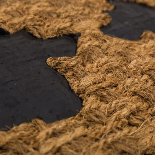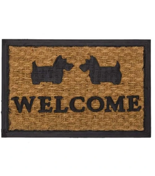 Ce paillasson en caoutchouc et coco se caractérise par son look original avec ses deux chiens.
