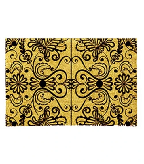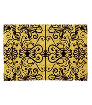 Paillasson en coco avec motifs. Dimensions: Longueur 70cm x largeur 40cm – Matière: Coco – Couleur: Marron et Noir