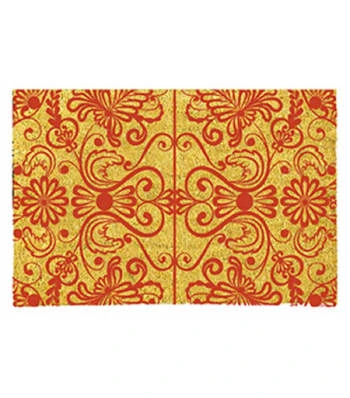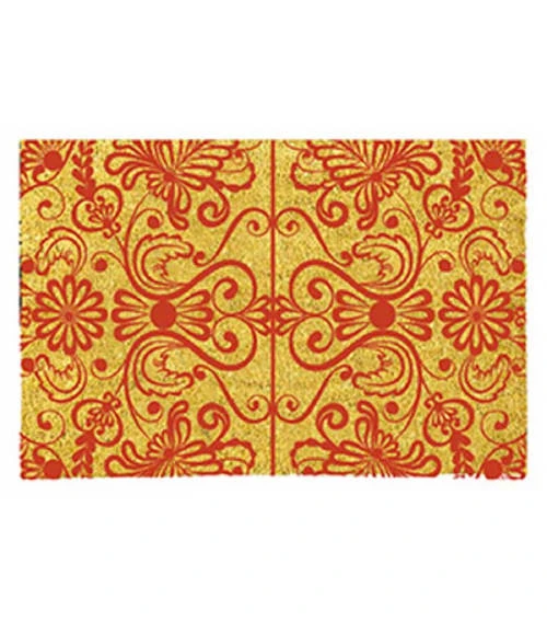 Paillasson en coco avec motifs. Dimensions: Longueur 70cm x largeur 40cm – Matière: Coco – Couleur: Marron et Noir