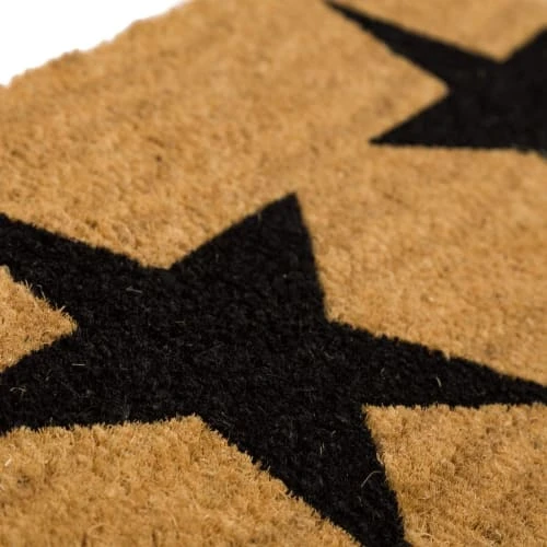 Paillasson en coco avec 3 étoiles. Dimensions: Longueur 75cm x largeur 25cm x Hauteur 1.5cm – Matière: Coco et Caoutchouc – Couleur: Marron et Noir